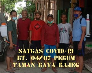Diselasela aktivitas penyemprotan Asep setiadi, sebagai ketua rt 04/07 perum taman raya rajeg, Sabtu (18/04/2020) mengatakan dalam rangka mencegah dan memutus mata rantai virus Covid 19 kami di lingkungan melakukan giat jaga lingkungan secara mandiri dengan di bantu oleh para warga melakukan rutinitas yang di lakukan seminggu 2x hal ini adalah bentuk upaya meminimalisir dan mencegah dampak pandemi yang sedang terjadi selain itu saya sebagai ketua RT di dukung sepenuhnya oleh warga dan staf ke rt an untuk melakukan giat tersebut,