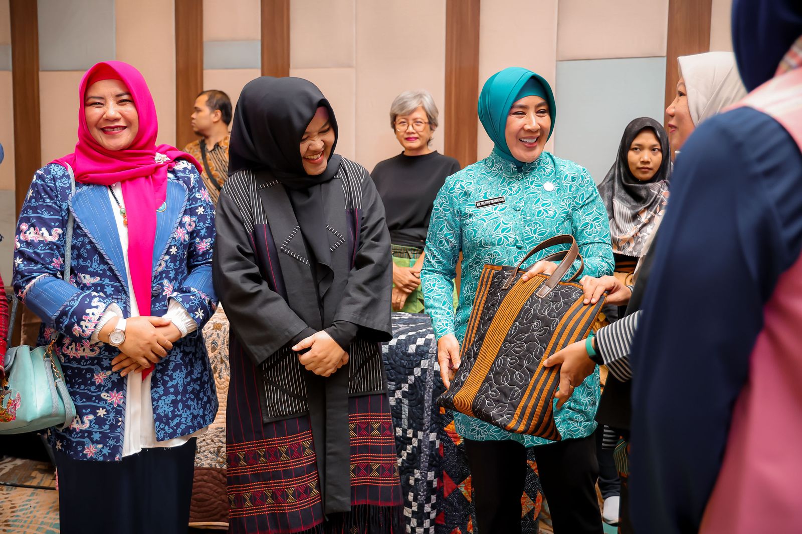 Penjabat (Pj) Ketua Dewan Kerajinan Nasional Daerah (Dekranasda) Provinsi Banten Tine Al Muktabar mendampingi Ketua Harian Dekranas Tri Tito Karnavian saat membuka kegiatan Bimbingan Teknis dalam rangka Penyelenggaraan Seni Menjahit dan Kerajinan yang diselenggarakan Direktorat Jenderal Bina Pembangunan Daerah Kemendagri.