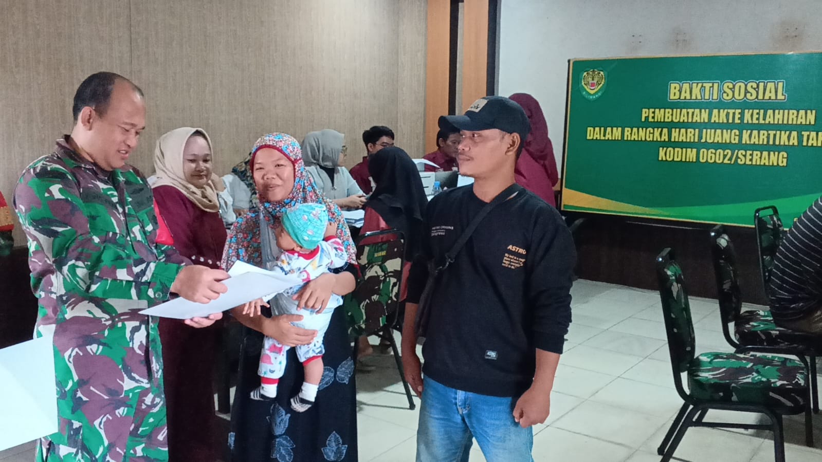 Dalam rangka memperingati Hari Juang Kartika Tentara Nasional Indonesia Angkatan Darat (HJK TNI-AD) Tahun 2024, Kodim 0602/Serang mengadakan kegiatan Bakti Sosial (Baksos) pembuatan akta kelahiran.