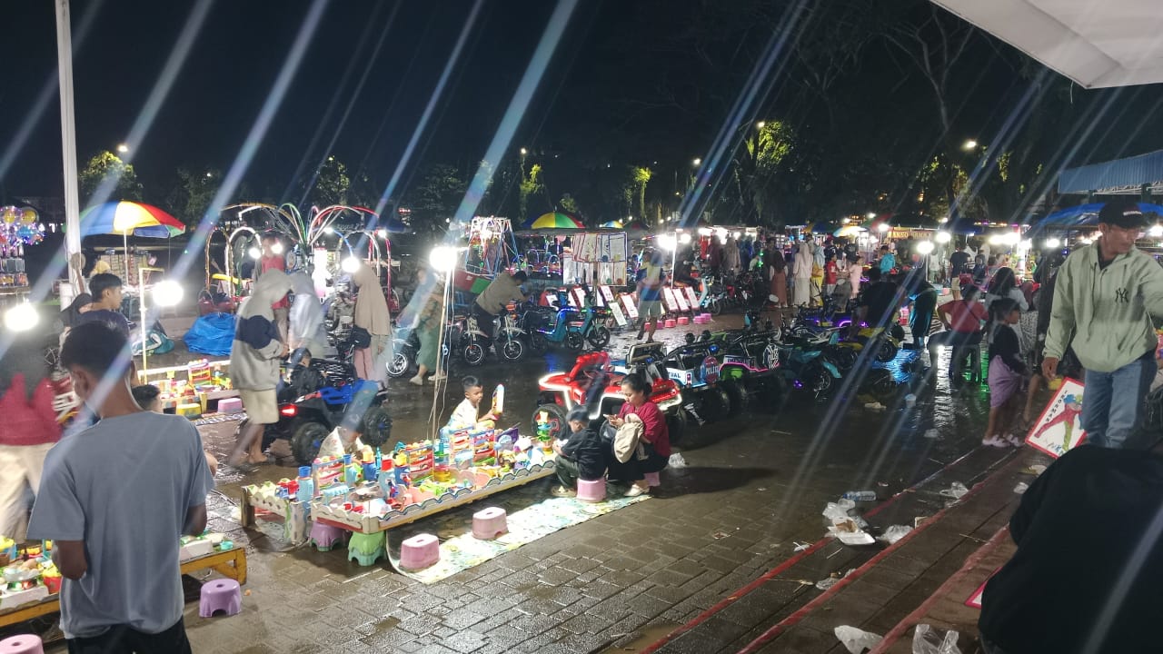 Pasca Hari Raya Idul Fitri 1446 Hijriah/2025 Masehi, sejumlah pengunjung di Alun-Alun Rangkasbitung, Kabupaten Lebak, Banten, tak seperti biasanya membludak. Hal ini memberikan dampak positif bagi para pedagang di Alun-Alun Rangkasbitung.