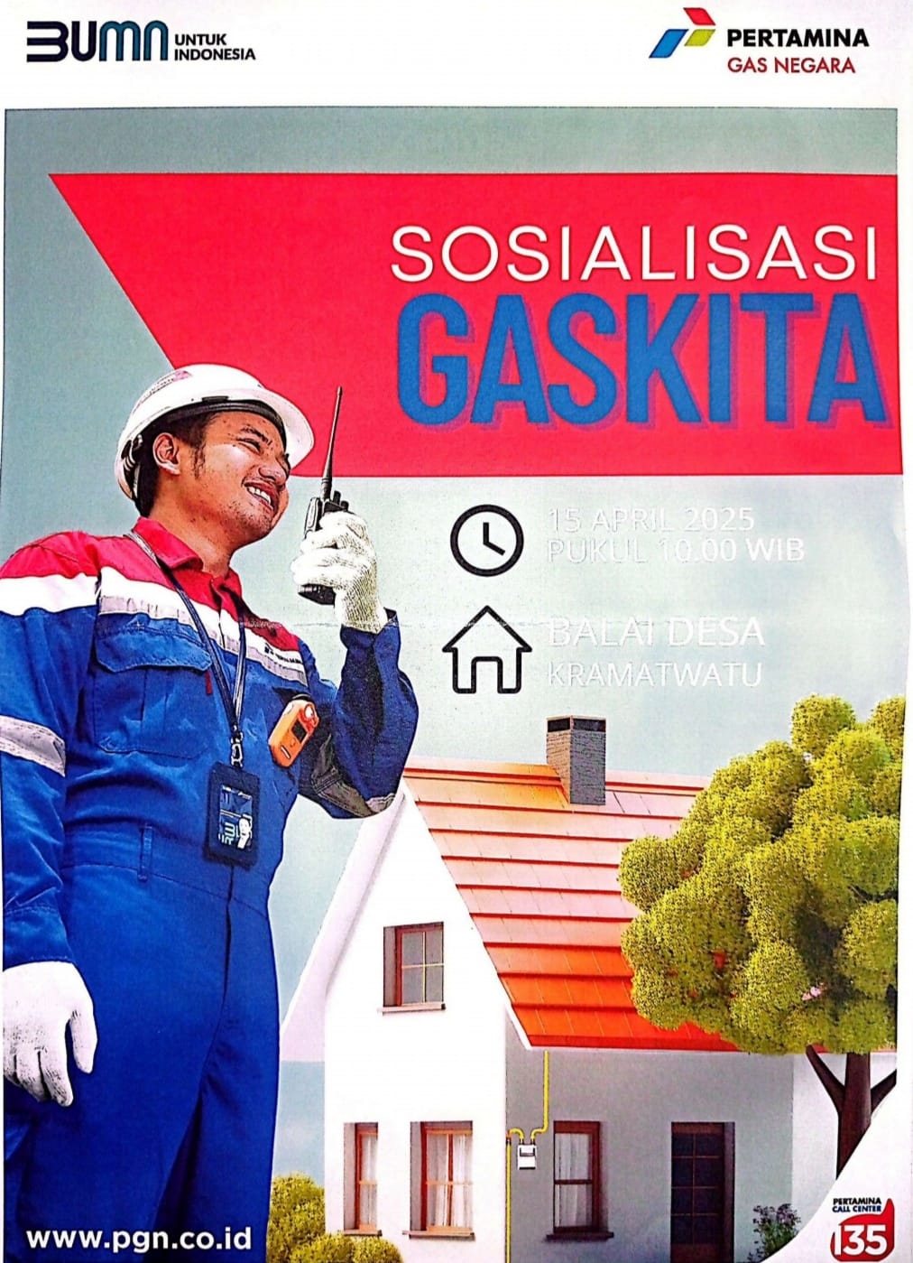 Hapiz Maulana menjelaskan, terkait dengan hal tersebut, maka pihaknya akan mengadakan sosialisasi dan Pendaftaran Jaringan Gas Bumi PGN di Desa Kramatwatu, Kecamatan Kramatwatu, Kabupaten Serang.