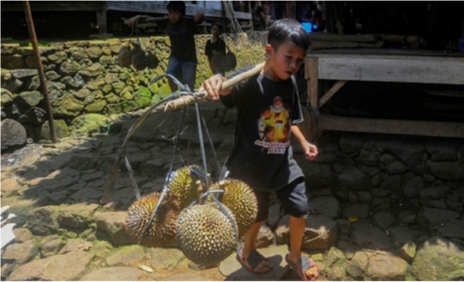 Upaya yang dilakukan bocah-bocah mungil Suku Baduy begitu menarik. Mereka harus berjibaku untuk menjajakan buah durian dari hasil panen di kebun miliknya. Hasilnya tentu saja guna menopang kehidupan ekonomi keluarganya.