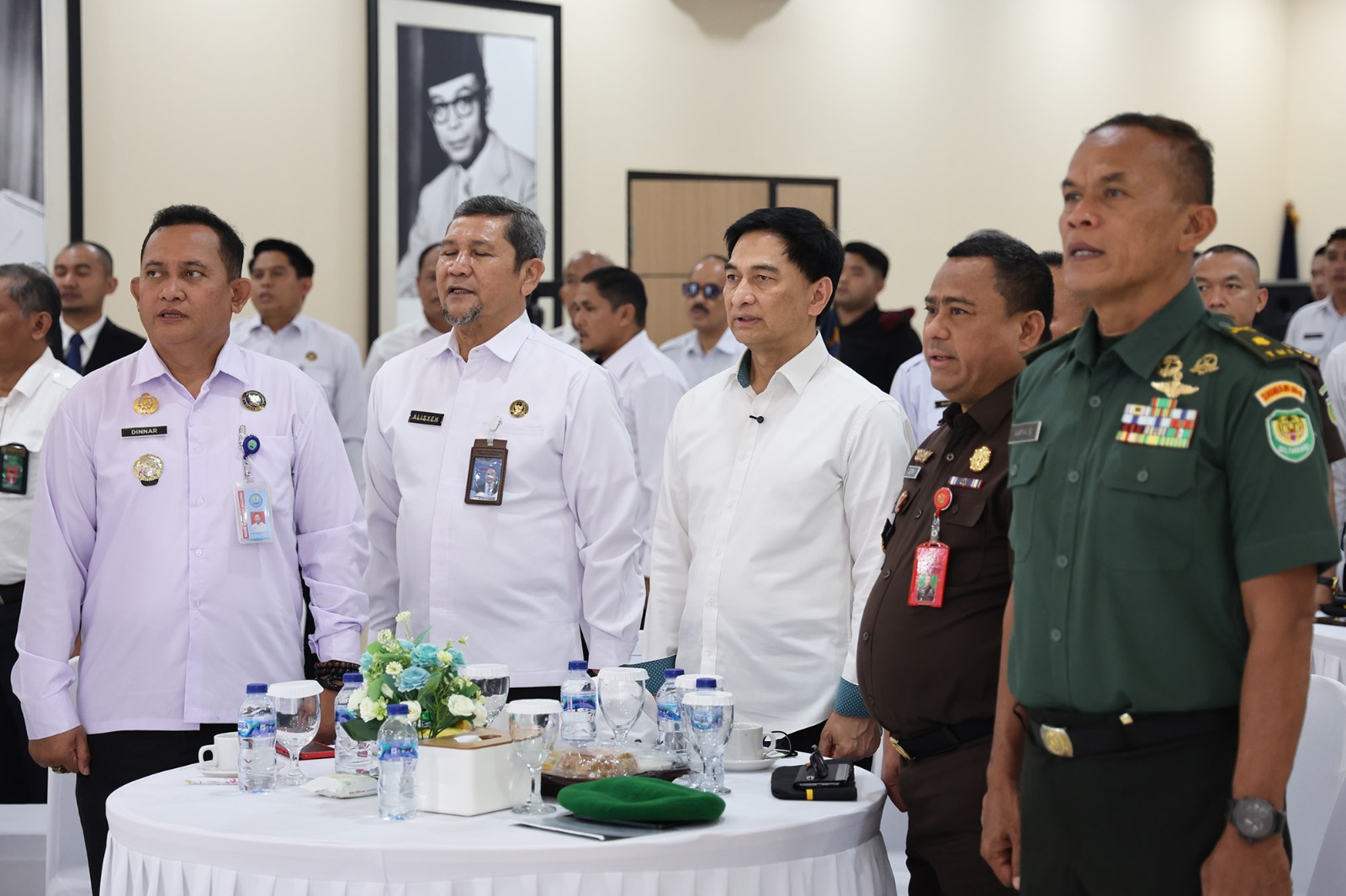 Wakil Gubernur (Wagub) Banten, A. Dimyati Natakusumah menghadiri Hari Bakti Pemasyarakatan ke-61 serentak secara nasional yang dilakukan secara virtual di Kantor Wilayah (Kanwil) Kementerian Imigrasi dan Pemasyarakatan (Kemenimipas) Provinsi Banten, Kota Serang, pada Senin (28/4/2025). Dalam kesempatan tersebut, Dimyati mengajak jajaran Kanwil Kemenimipas Provinsi Banten terus meningkatkan kolaborasi demi mewujudkan Banten berkah, beriman dan bertaqwa, maju merata dan tidak korupsi.