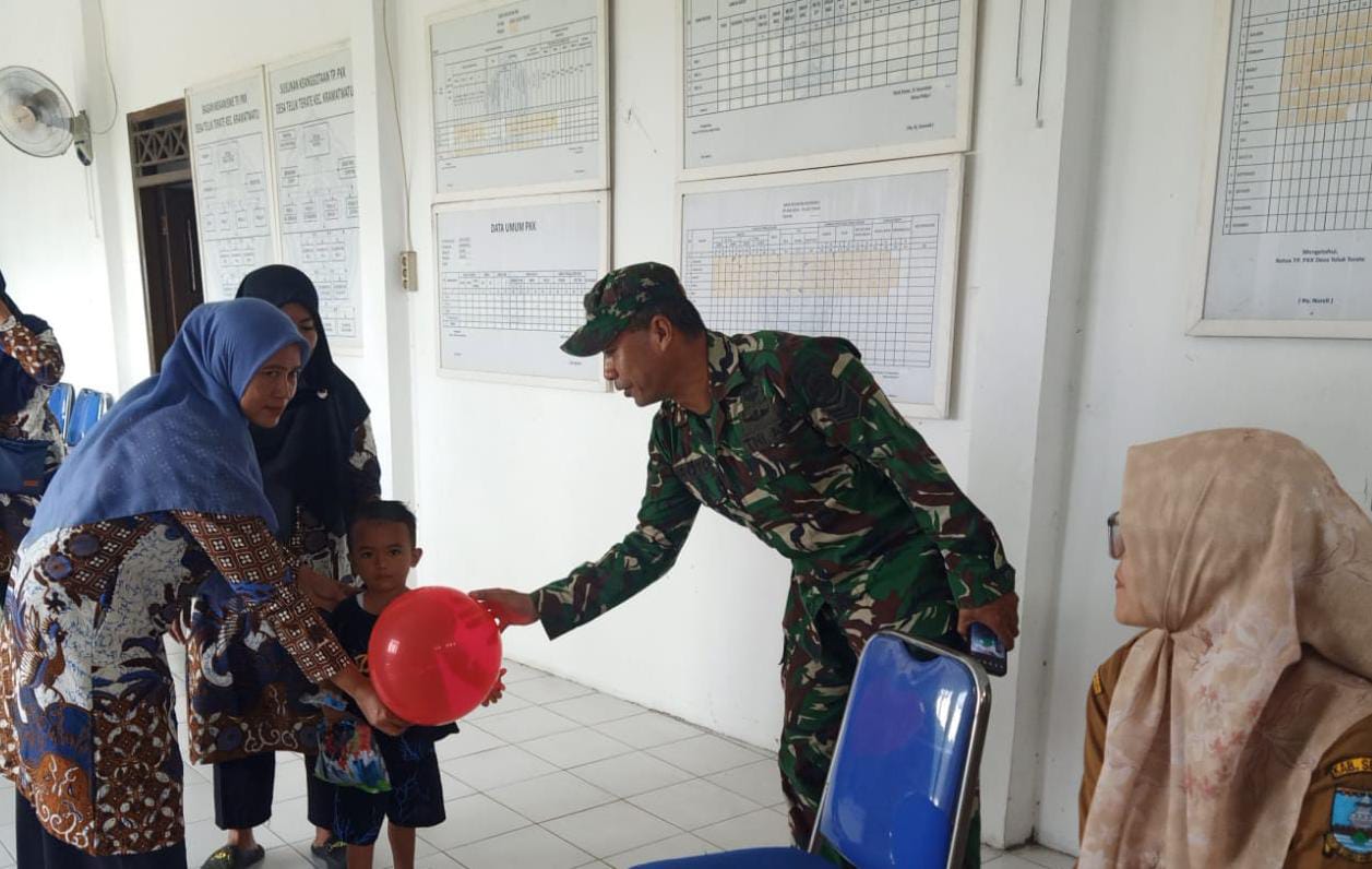 Bintara Pembina Desa (Babinsa) Koramil 0602-06/Kramatwatu Kodim 0602/Serang, Sersan Kepala (Serka) Suroto, turut serta mendukung suksesnya Pekan Imunisasi Dunia 2025.