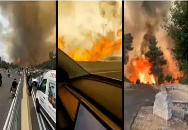 Sebuah unggahan di halaman Facebook Palestina “Jerusalem Compass” berbunyi : “Menjelang apa yang disebut ‘Hari Kemerdekaan’ dan berdirinya negara mereka di tanah Palestina, kebakaran besar terjadi di Perbukitan Latrun, di sepanjang Jalan Raya 1 antara Yerusalem dan Jaffa. Puluhan ribu pemukim terpaksa mengungsi di bawah pengepungan.”