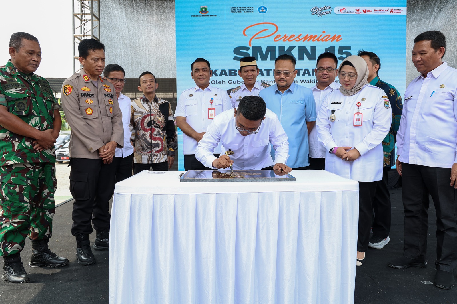 Gubernur Banten, Andra Soni meresmikan Sekolah Menengah Kejuruan Negeri (SMKN) 15 Kabupaten Tangerang di Desa Suradita Kecamatan Cisauk Kabupaten Tangerang, pada Rabu (7/5/2025). Sekolah baru itu memberikan kesempatan akses pendidikan masyarakat lebih merata.