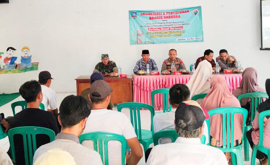 Bintara Pembina Desa (Babinsa) Koramil 0602-21/Kopo Kodim 0602/Serang, Sersan Mayor (Serma) Jono, mewakili Komandan Koramil (Danramil), menghadiri kegiatan sosialisasi dan penyuluhan tentang bahaya narkoba, bertempat di Aula Kantor Desa Jawilan, Kecamatan Jawilan, Kabupaten Serang, Provinsi Banten, pada Kamis (22/05/2025).