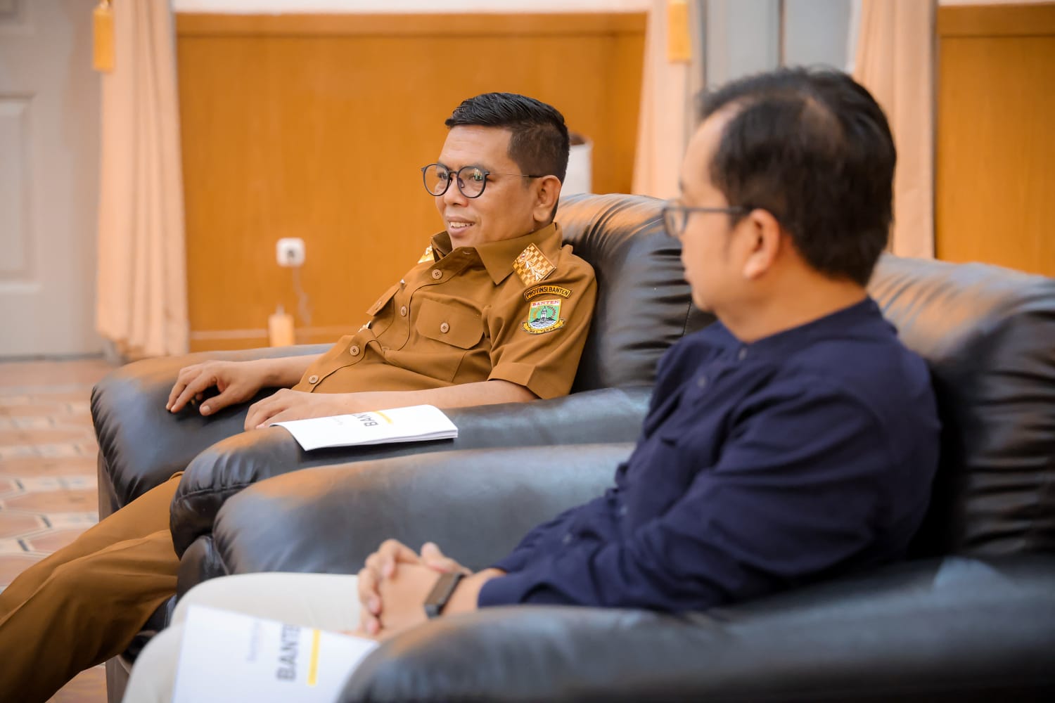 Gubernur Banten, Andra Soni menerima kunjungan pimpinan Surat Kabar Harian Banten Raya beserta jajarannya di Gedung Negara Provinsi Banten, Jl. Brigjen KH. Syam’un No.5, Kota Serang, pada Senin (23/6/2025). Dalam kunjungan itu salah satunya membahas, peran penting media massa dalam mendukung percepatan pembangunan daerah.