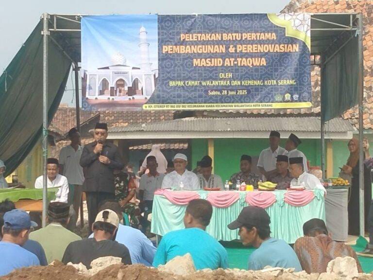 “Peletakan batu pertama yang dilakukan oleh Camat Walantaka, Muslim Sholeh menandai dimulainya pembangunan Masjid At-Taqwa. Diharapakan dapat selesai tepat waktu dan sesuai dengan rencana yang telah ditetapkan.