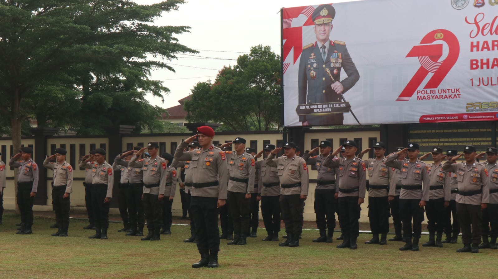 Kapolres Serang, AKBP, Condro Sasongko memimpin upacara peringatan Hari Bhayangkar ke-79 yang mengusung tema Polri Untuk Masyarakat. Upacara digelar di Lapangan Apel Polres Serang, pada Selasa (1/7/2025).