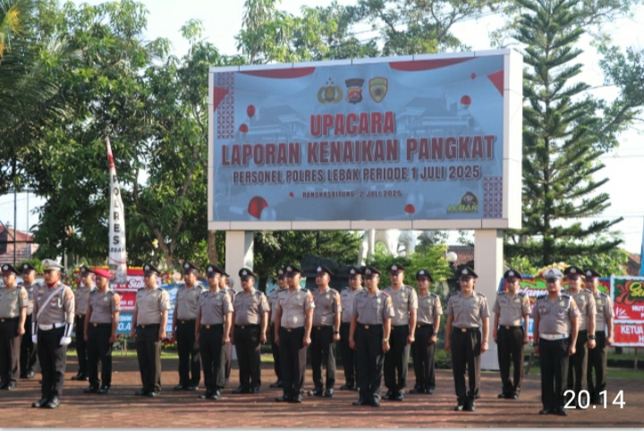 Kapolres Lebak, Polda Banten, AKBP Herfio Zaki, SIK, MH, memimpin langsung Upacara Korp Raport Kenaikan Pangkat Personel Polres Lebak di Lapangan Apel Mapolres Lebak. pada Rabu (2/7/2025).