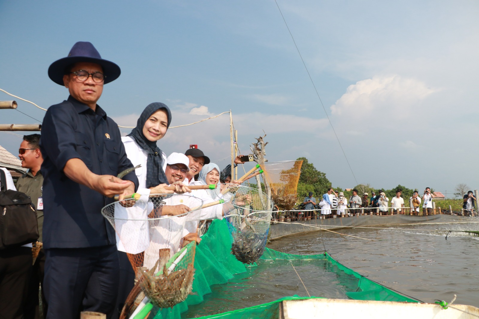 Mendes PDT, Yandri Susanto, juga menyampaikan apresiasi untuk Desa Domas yang telah melakukan panen udang vaname. Hasil dari bioflok sebagai salah satu program ketahanan pangan dari Kemendes PDT yang menggunakan dana desa.
