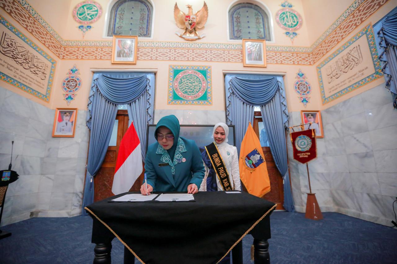 Ketua Tim Penggerak Pemberdayaan dan Kesejahteraan Keluarga (TP PKK) Provinsi Banten Tinawati Andra Soni melantik Bunda PAUD, Ketua Tim Pembina Posyandu dan Ketua TP PKK Kabupaten Serang periode 2025-2030. Pelantikan dilakukan di Pendopo Bupati Serang, Jl Veteran No. 1, Kota Serang, pada Jum’at (4/7/2025).
