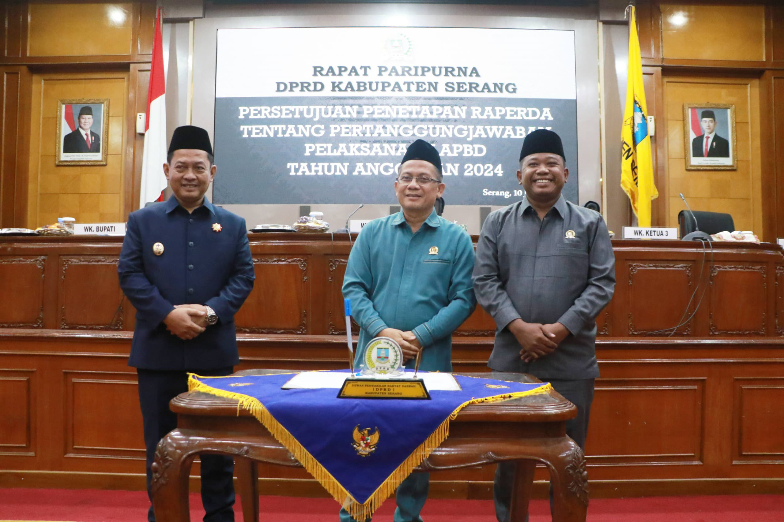 Dewan Perwakilan Daerah Rakyat (DPRD) Kabupaten Serang menetapkan Rancangan Peraturan Daerah (Raperda) menjadi Peraturan Daerah (Perda) tentang Pertanggungjawaban Pelaksanaan Anggaran Pendapatan Belanja Daerah (APBD) Tahun 2024. Penetapan melalui Rapat Paripurna DPRD Kabupaten Serang yang dipimpin Wakil Ketua II, Agus Wahyudiono di gedung dewan setempat, pada Kamis (10/7/2025).