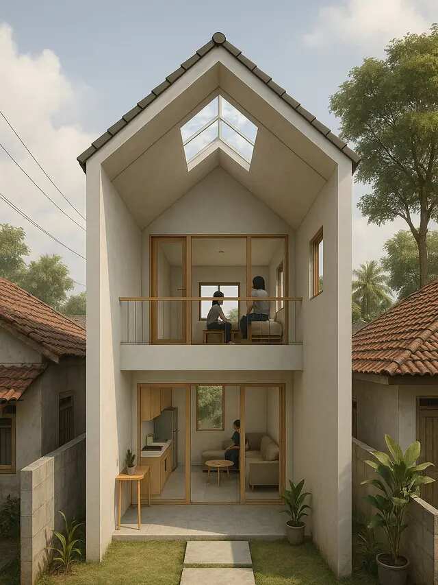 Desain ini mendukung efisiensi energi karena mengurangi kebutuhan pencahayaan buatan di siang hari. Selain itu, pencahayaan vertikal dari atas menciptakan nuansa alami yang menyegarkan. Desain ini sangat cocok bagi keluarga kecil yang menginginkan hunian fungsional dengan atmosfer terang dan nyaman.