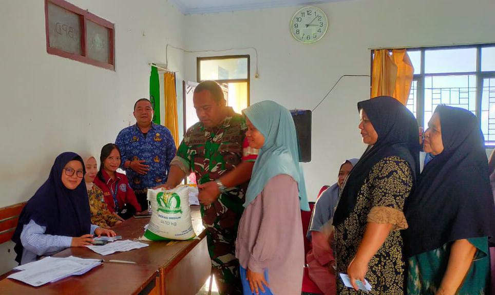 Bintara Pembina Desa (Babinsa) Koramil 0602-09/Cikeusal Kodim 0602/Serang, Pelda Budi Trisantosa, melaksanakan pemantauan dan pendampingan serta pengawasan distribusi bantuan sosial beras dari pemerintah kepada Keluarga Penerima Manfaat (KPM), bertempat di Kantor Kelurahan Kemanisan, Kecamatan Curug, Kota Serang, Provinsi Banten, pada Rabu (16/7/2025).
