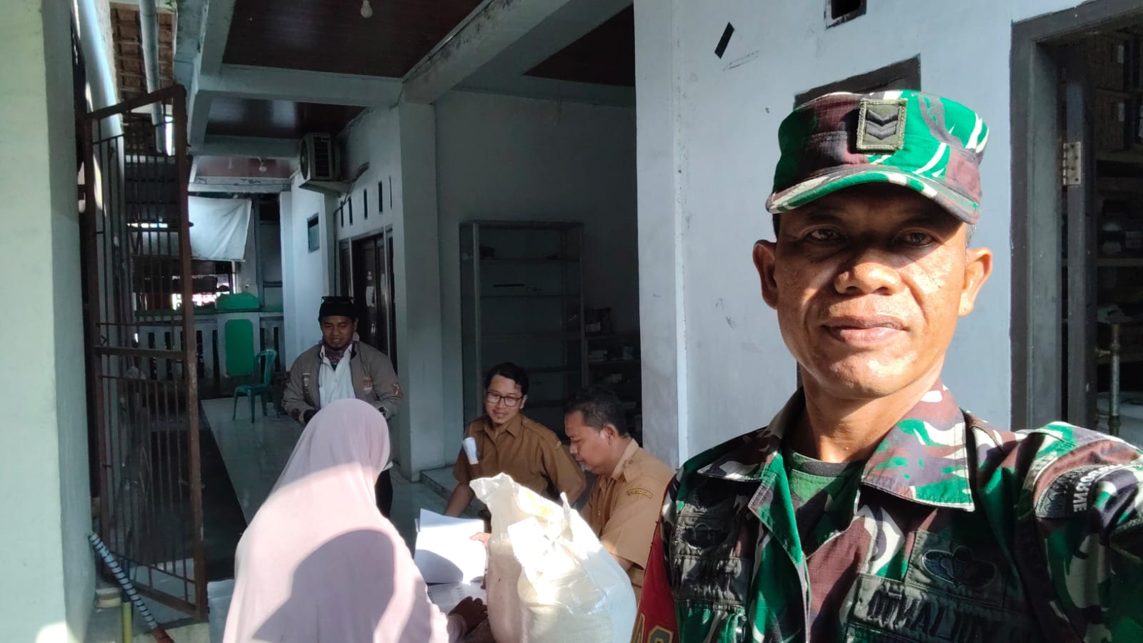 Babinsa Koramil 0602-06//Kramatwatu, Kodim 0602/Serang, Budi Y, turut membantu menyalurkan banntuan sosial (Bansos) pangan kepada masyaralat di Desa Margasana, Kecamatan Kramatwatu, Kabupaten Ssrang, Bantem, pada Senin (21/7/2025).