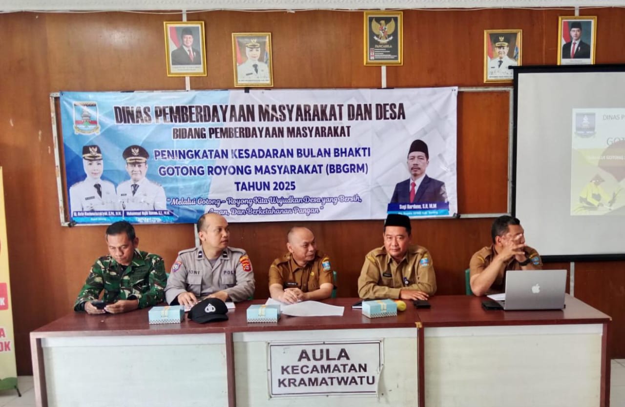 Bintara Pembina Desa (Babinsa) Koramil 0602-06/Kramatwatu Kodim 0602/Serang, Sersan Kepala (Serka) Iwan, mewakili Komandan Koramil (Danramil), menghadiri kegiatan rapat koordinasi peningkatan kesadaran Bulan Bhakti Gotong Royong Masyarakat (BBGRM) Tahun 2025. Kegiatan itu bertempat di Aula Kantor Kecamatan Kramatwatu, Kabupaten Serang, Provinsi Banten, pada Selasa (22/7/2025).