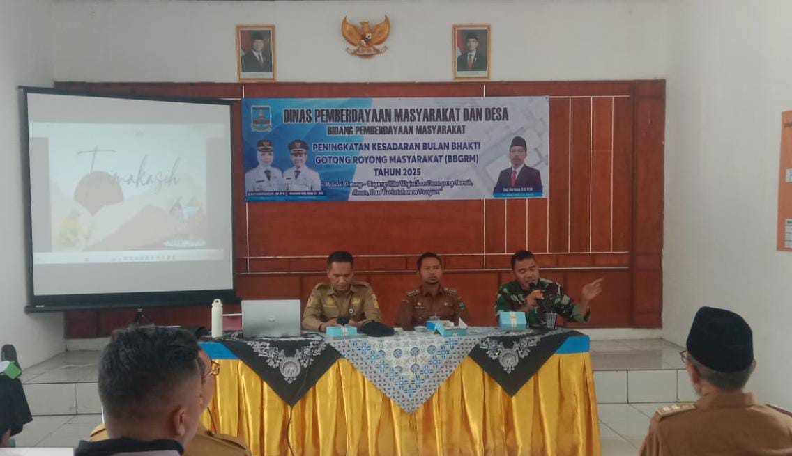 Komandan Koramil (Danramil) 0602-07/Waringinkurung Kodim 0602/Serang, Letnan Satu (Lettu) Inf Laode Adi Nurjaman, turut berpartisipasi dalam Rapat Koordinasi Bulan Bhakti Gotong Royong Masyarakat Tahun 2025, bertempat di Aula Kantor Kecamatan Waringin Kurung, Kabupaten Serang, Provinsi Banten, pada Selasa (22/7/2025).