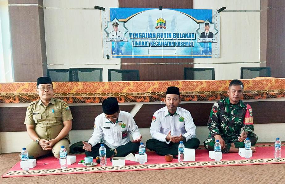 Bintara Pembina Desa (Babinsa) Koramil 0602-02/Kasemen Kodim 0602/Serang, Kopral Satu (Koptu) Rohman, mewakili Komandan Koramil (Danramil) menghadiri pengajian bulanan tingkat Kecamatan Kasemen, bertempat di Aula Kantor Kecamatan Kasemen, Kota Serang, Provinsi Banten, pada Selasa (22/7/2025).