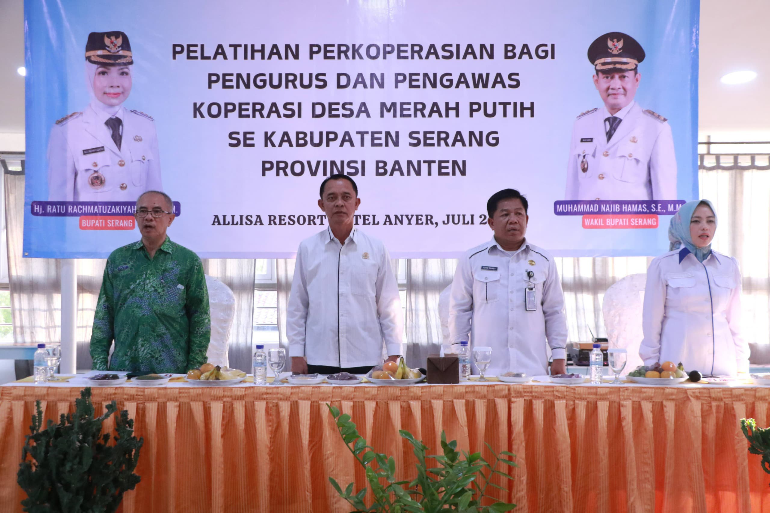 Pemerintah Kabupaten Serang melalui Dinas Koperasi, UMKM, Perindustrian dan Perdagangan (Diskoumperindag) memberikan pelatihan kepada 652 Ketua dan Pengawas Koperasi Desa Merah Putih (KDMP). Pelatihan ini dilakukan dalam tiga tahap, dengan tahap pertama diikuti oleh 120 orang, yang berlangsung dari 23 hingga 28 Juli 2025 di Allisa Resort Hotel Anyer.