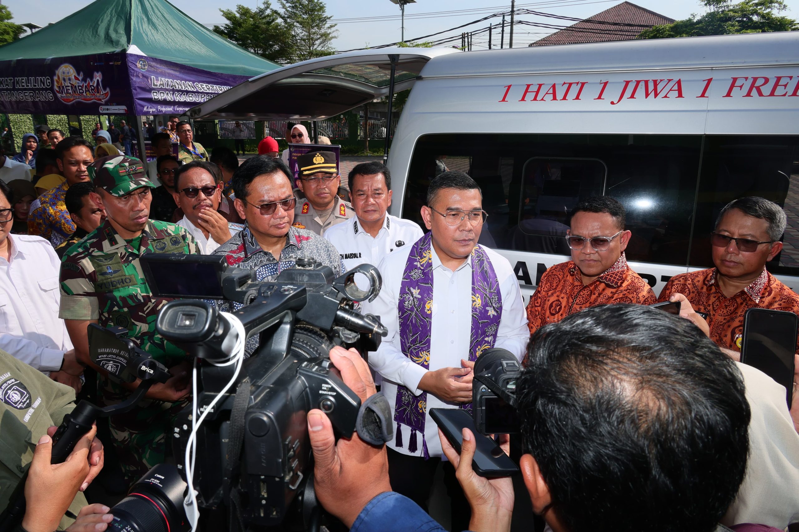 Wakil Menteri Agraria dan Tata Ruang/Wakil Kepala Badan Pertanahan Nasional (Wamen ATR/Waka BPN), Ossy Dermawan, meninjau Layanan Sertipikat Keliling yang digagas oleh Kantor Pertanahan (Kantah) Kabupaten Tangerang pada Rabu (23/07/2025). Layanan Sertipikat Keliling saat ini berada di halaman Kantor Kecamatan Kosambi, Kabupaten Tangerang.