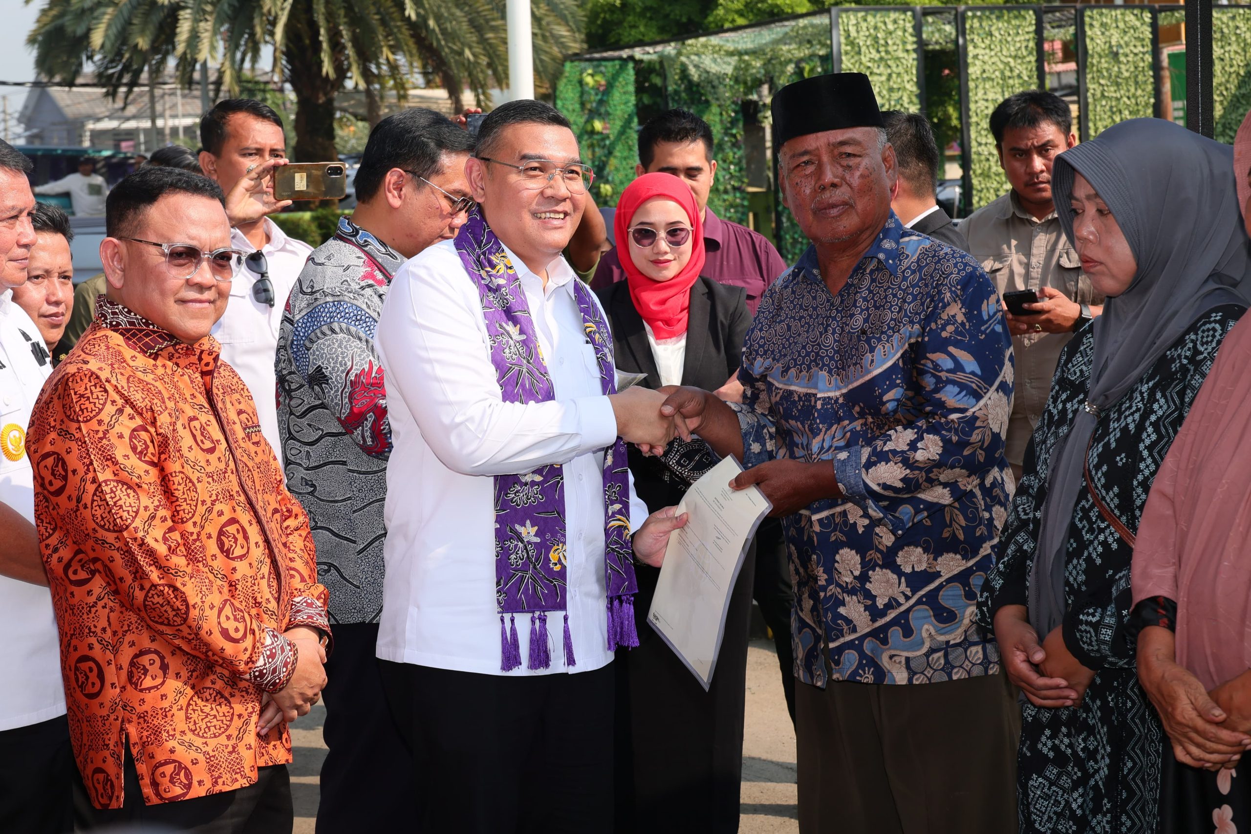 Dalam kegiatan ini, Wamen Ossy berkesempatan menyerahkan delapan sertipikat kepada delapan masyarakat selaku penerima. Sertipikat ini merupakan sertipikat hasil layanan yang diurus dari Kantah Kabupaten Tangerang dan diberikan di Layanan Sertipikat Keliling bagi masyarakat yang tinggal di dekat area Kecamatan Kosambi dan sekitarnya.