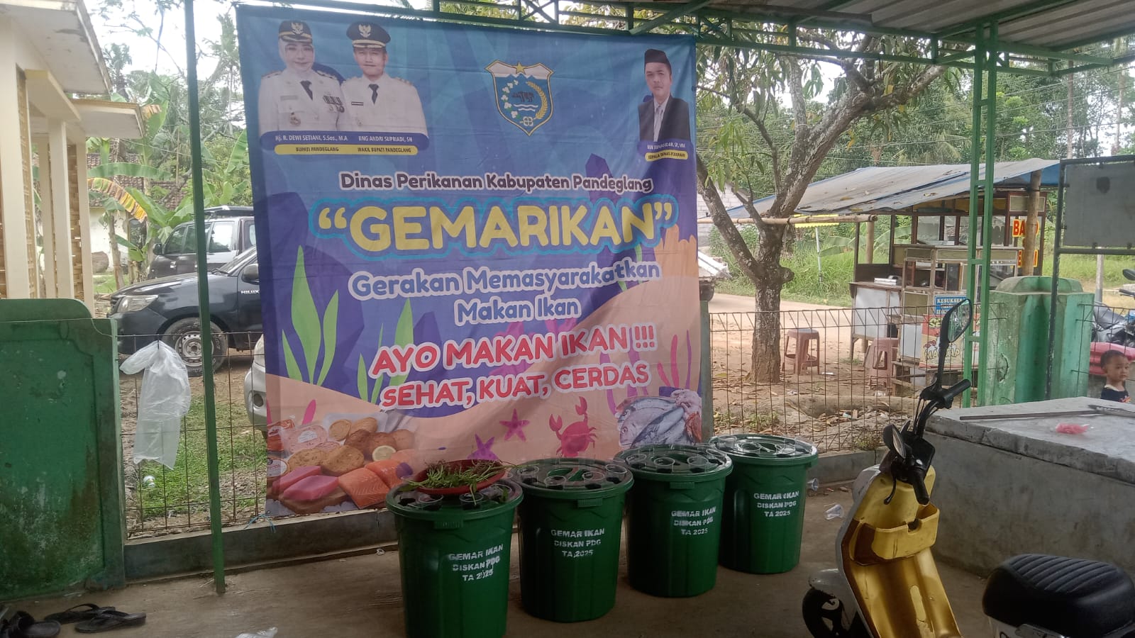 Dinas Perikanan Kabupaten Pandeglang dalam rangka menekan angka stunting luncurkan program Gerakan Memasyarakatkan Makan ikan, Acara di selenggarakan di Desa Kubangkampil, Kecamatan Sukaresmi, Kabupaten Pandeglang, Banten, pada Rabu (30/7/2025).