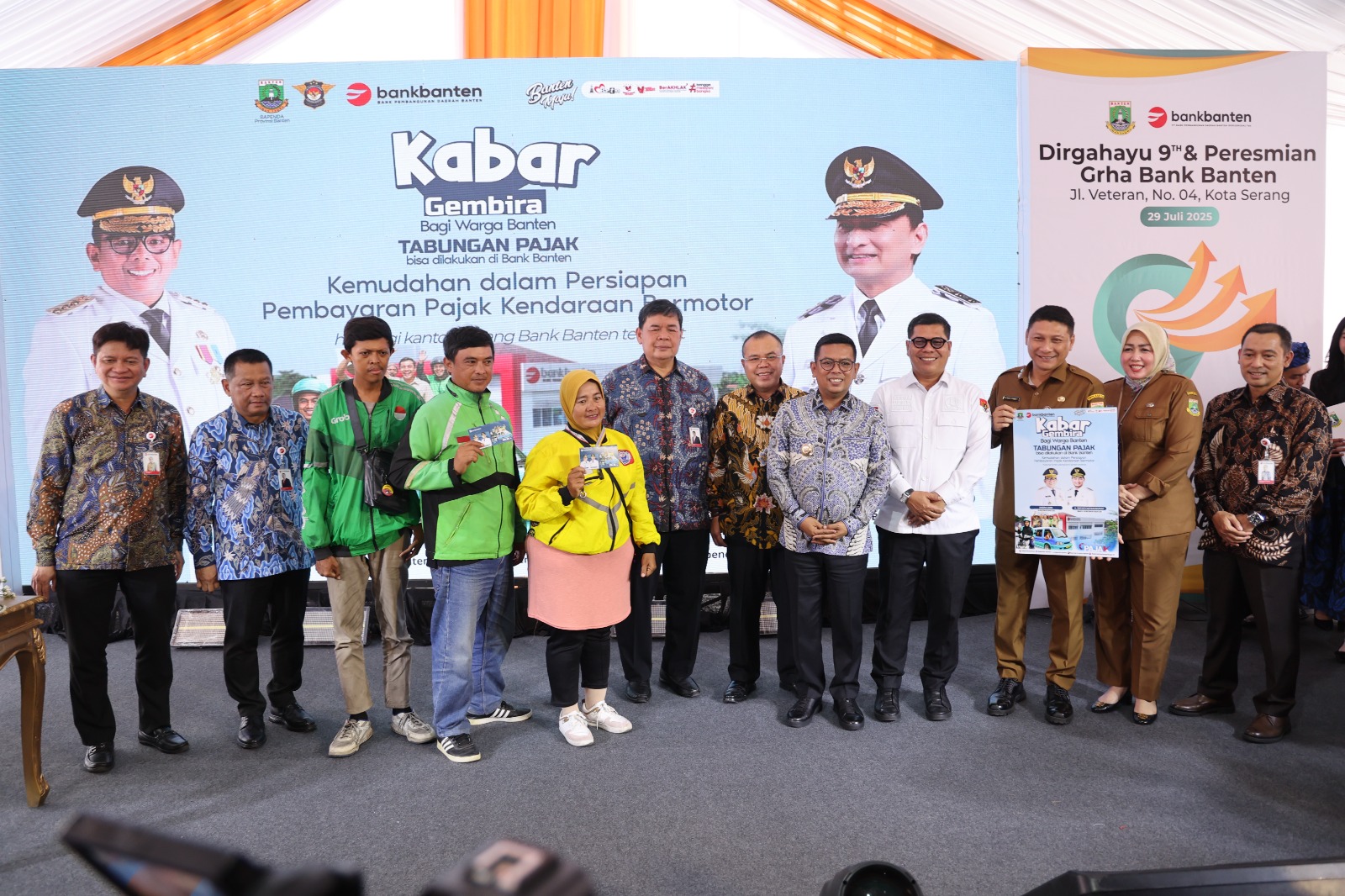 Gubernur Banten, Andra Soni meresmikan program Tabungan Pajak Kendaraan Bermotor (TPKB) bersamaan dengan peresmian Gedung Grha Bank Banten sebagai Kantor Pusat PT Bank Pembangunan Daerah Banten Tbk (Bank Banten), di Jalan Veteran No. 4, Kota Serang, pada Selasa (29/7/2025). Melalui TPKB, masyarakat bisa menabung atau mencicil pajak kendaraan bermotornya sebelum jatuh tempo.