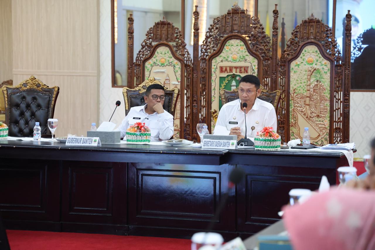 Gubernur Banten, Andra Soni menggelar rapat antar pimpinan/kepala perangkat daerah (Rapim) di Aula Pendopo Gubernur Banten Kawasan Pusat Pemerintahan Provinsi Banten (KP3B) Palima, Curug Kota Serang, pada Rabu (30/7/2025). Rapat dilaksanakan untuk sinergi dan kolaborasi antar Organisasi Perangkat Daerah (OPD) dalam pelaksanaan program pembangunan Provinsi Banten. Seluruh jajaran Pemerintah Provinsi Banten harus memperkuat komunikasi dan kerja kolektif, memastikan setiap tugas yang diemban berkinerja maksimal.