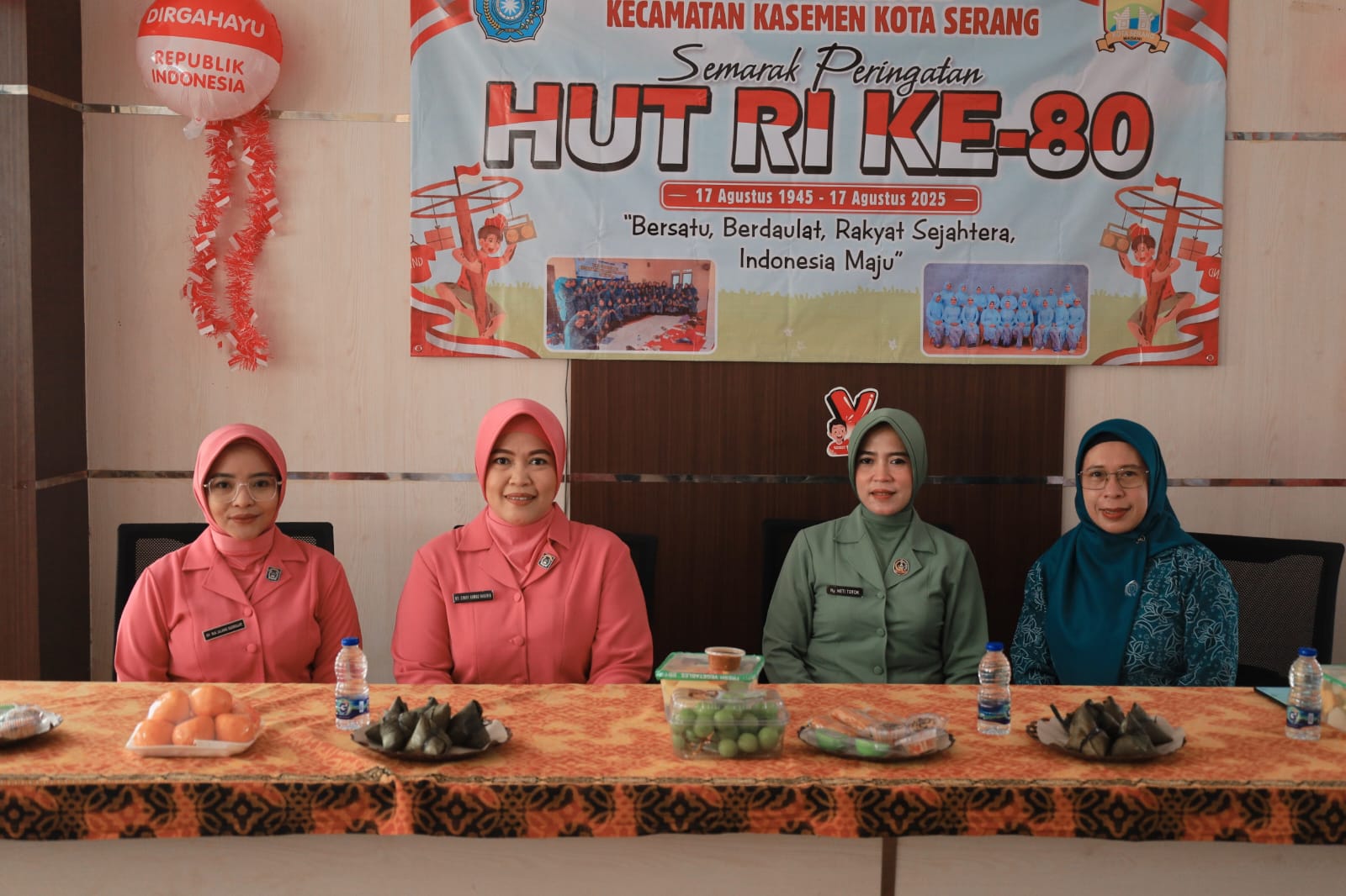 Kegiatan itu dalam rangka memeriahkan HUT RI ke-80. Ketua Ranting 03 Persit KCK Cabang XXXIV Koramil 0602-02/Kasemen didampingi oleh Ibu Camat Kasemen dan Ibu Kapolsek Kasemen, serta para ibu Muspika Kecamatan Kasemen lainnya.