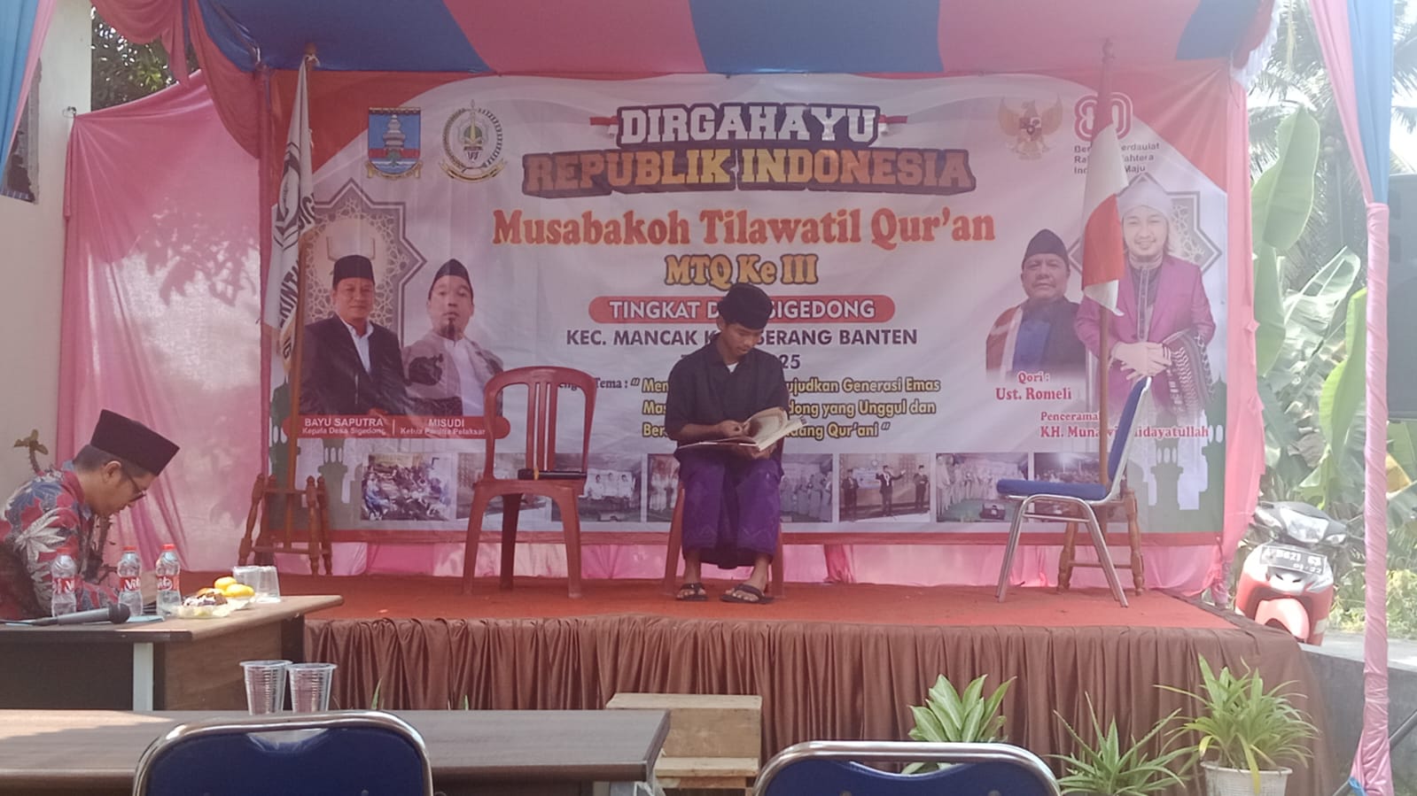 Pemerintahan Desa Sigedong, Kecamatan Mancak, Kabupaten Serang, Banten, dalam rangka HUT RI ke 80 mengadakan berbagai lomba terutama lomba Musabakoh Tilawatil Qur’an (MTQ), Volly Ball, Qosidah, Yalil dan pawai karnaval mulai dilaksanakan pada Num’at 15-17 Agustus 2025.