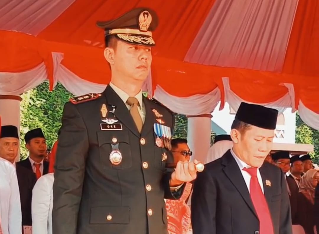 Komandan Kodim (Dandim) 0602/Serang, Letnan Kolonel (Letkol) Arm Oke Kistiyanto, mengikuti Upacara Pengibaran Bendera dalam rangka HUT RI Ke-80 Tahun 2025, bertempat di Alun-alun Barat Kota Serang, Provinsi Banten, pada Minggu (17/8/2025)