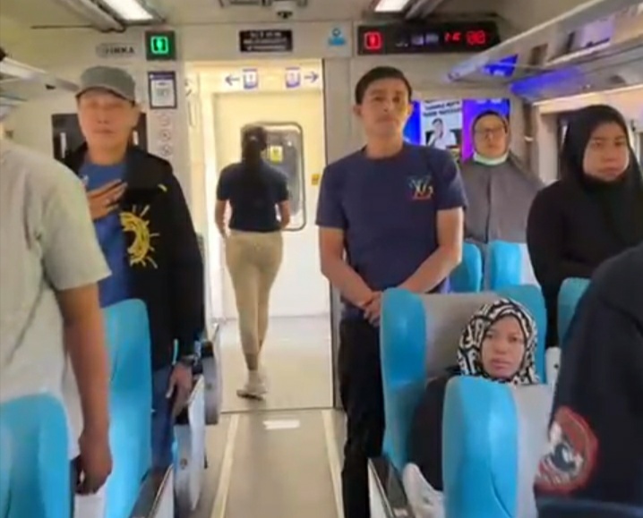 Pada momen tersebut, seluruh pelanggan diajak berdiri tegap dan menyanyikan Indonesia Raya serentak saat lagu dikumandangkan melalui pengeras suara. Suasana khidmat turut ditandai dengan bunyi klakson lokomotif, menyatukan seluruh rangkaian kereta dalam semangat kebangsaan. Pelanggan menyambut kegiatan ini dengan antusias, bernyanyi dengan penuh khidmat serta memberikan penghormatan kepada Sang Merah Putih.