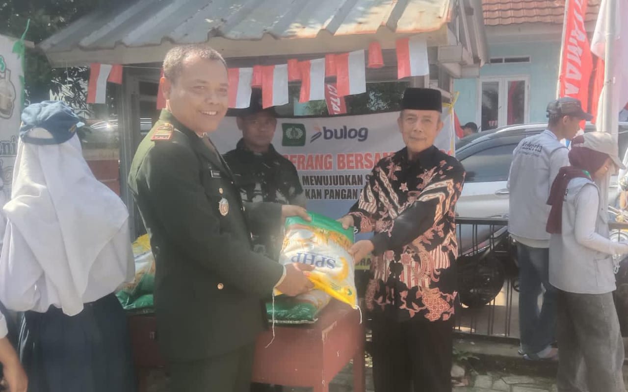 Memperingati Hari Ulang Tahun (HUT) Republik Indonesia (RI) Ke-80 Tahun 2025, Koramil 0602-12/Ciomas Kodim 0602/Serang menggelar gerakan pangan murah berupa distribusi beras SPHP, untuk menjaga stabilisasi harga pangan sebagai bentuk dukungan terhadap program swasembada pangan nasional, bertempat di Lapangan Bola Desa Citaman, Kecamatan Ciomas, Kabupaten Serang, Provinsi Banten, pada Minggu (17/08/2025).