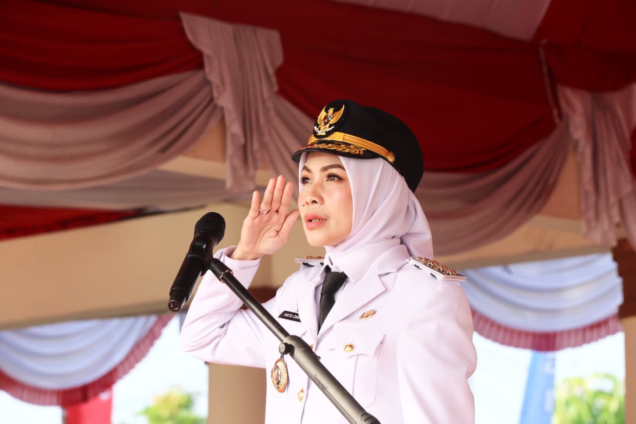 Bupati Serang, Ratu Rachmatuzakiyah menjadi Inspektur Upacara peringatan HUT ke 80 Kemerdekaan RI tingkat Kabupaten Serang Tahun 2025 di Alun-alun Kecamatan Kramatwatu pada Minggu (17/8/2025) .