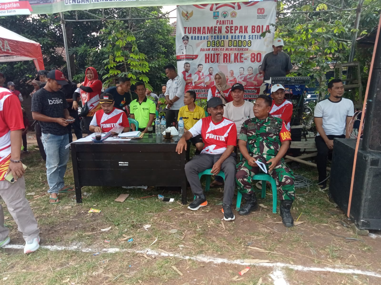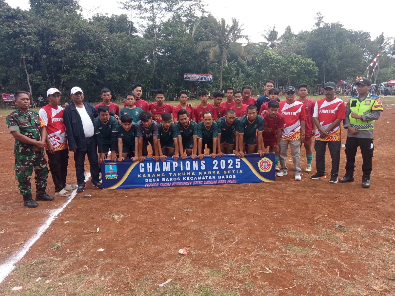 Dalam rangka memeriahkan Hari Ulang Tahun (HUT) ke-80 Kemerdekaan Republik Indonesia, Panitia Turnamen Sepak Bola Karang Taruna Karya Setia Desa Baros, Kecamatan Baros, Kabupaten Serang, Provinsi Banten, menggelar turnamen sepak bola yang diikuti oleh 20 tim. Kegiatan ini berlangsung meriah dengan partisipasi aktif dari masyarakat dan tim-tim yang hadir, oada Rabu (20/8/2025).