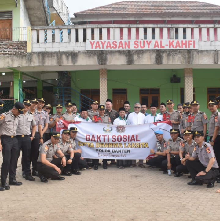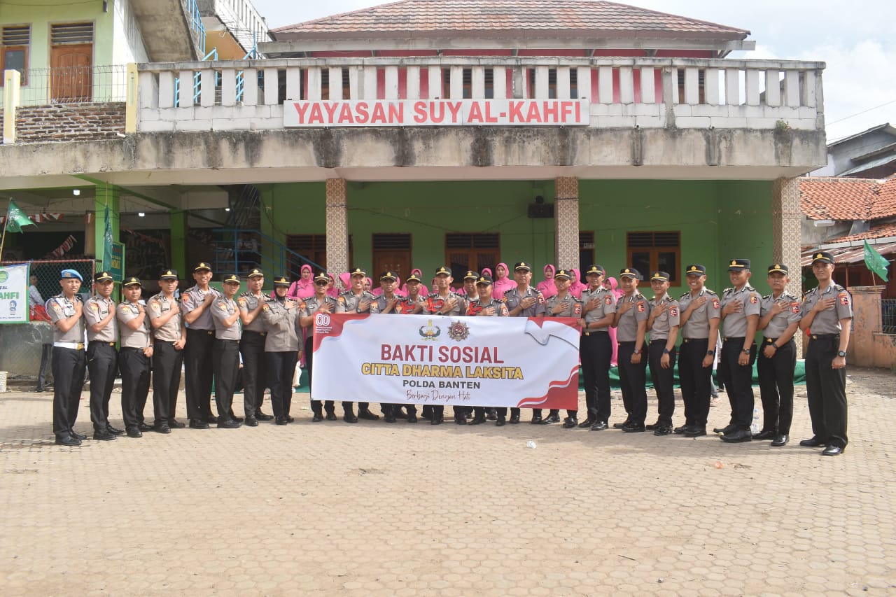 Sebagai wujud kepedulian sosial dan pengabdian kepada masyarakat sebanyak 24 siswa Sekolah Inspektur Polisi (SIP) Angkatan ke-54 Gelombang 2 Tahun Ajaran 2025 dari Polda Banten bersama Bhayangkari melaksanakan kegiatan Bakti Sosial (Baksos) di Yayasan Suy Al-Kahfi, yang berlokasi di Linkungan Baru RT 04 RW 04, Kelurahan Tamansari, Kecamatan Pulomerak, Kota Cilegon, Rabu (20/8/2025) siang.