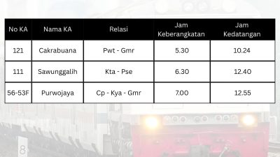 “PT Kereta Api Indonesia (Persero) KAI Daop 5 Purwokerto mengucapkan terima kasih kepada masyarakat atas kepercayaannya dalam menggunakan jasa kereta api.