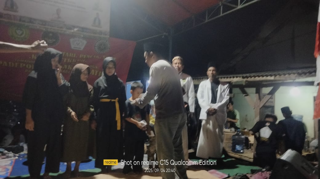 Padepokan Pusaka Kesatria menggelar acara Peringatan Maulid Nabi Muhammad SAW. Kegiatan di isi dengan istighosah, keceran dan pemberian santunan kepada anak yatim piatu yang berlokasi di Kampung Nagrog Umbul RT,07/RW,03 Desa Pudar, Kecamatan Pamarayan, Kabupaten Serang, Banten, pada Kamis (4/9/2025).