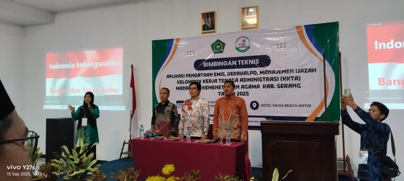 Forum Kelompok Kerja Tenaga Administrasi (KKTA) Madrasah mendukung penuh peningkatan kapasitas tenaga administrasi di lingkungan Kementerian Agama (Kemenag) Kabupaten Serang. Dukungan itu diwujudkan melalui kegiatan Bimbingan Teknis (Bimtek) Aplikasi Pendataan EMIS, VervalPD, dan Manajemen Ijazah, yang digelar pada 5–17 September 2025 di Hotel Salsa Beach Anyer.