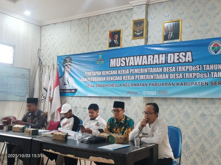 Pemerintah Desa Sindangheula bersama Badan Permusyawaratan Desa (BPD) menggelar musyawarah Desa Khusus (Musdesus) dalam rangka penetapan Rencana Kerja Daerah Perubahan Tahun 2025 serta RKPDes Tahun 2026. Kegiatan tersebut berlangsung di Gedung Aula Kantor Desa Sindangheula, pada Jum’at (3/10/2025).