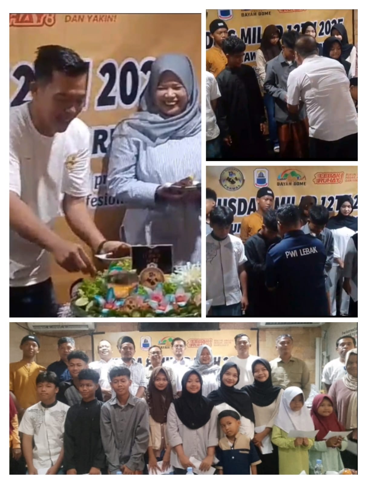 Forum Wartawan Lebak (FORWAL) merayakan Hari Ulang Tahunnya yang ke-12 dengan menggelar acara santunan terhadap puluhan anak yatim dan piatu, pada Sabtu (18/10/2025).. Acara yang digelar di Wisma Sugri ini dihadiri langsung oleh Ketua DPRD Kabupaten Lebak, Banten, beserta jajaran Muspika , Kapolres yang diwakili, Kodim 0603 yang diwakilu .Kejaksaan Tinggi Lebak yang diwakilu dan dari PWI Lebak .