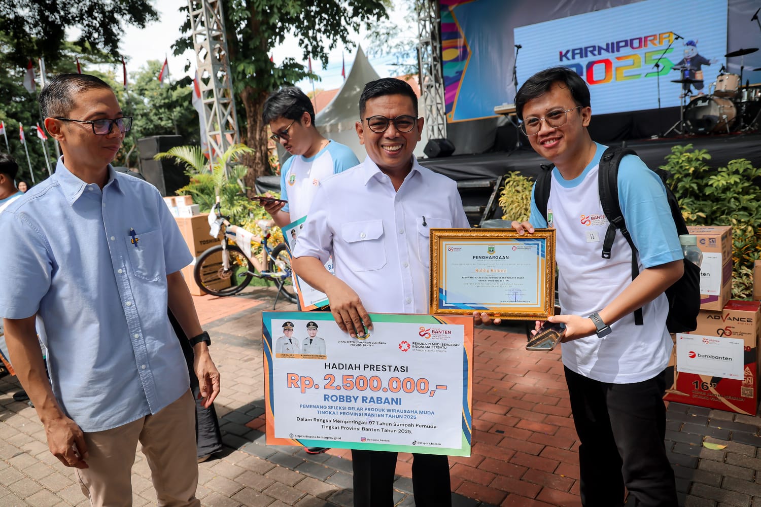 Gubernur Banten, Andra Soni menegaskan pentingnya peran generasi muda sebagai penggerak kemajuan bangsa. Hal itu disampaikan gubernur saat membuka kegiatan Karnipora 2025 yang digelar di halaman Gedung Negara Provinsi Banten, Jalan K.H. Syamun No. 5, Kota Baru, Kota Serang, pada Sabtu (25/10/2025).