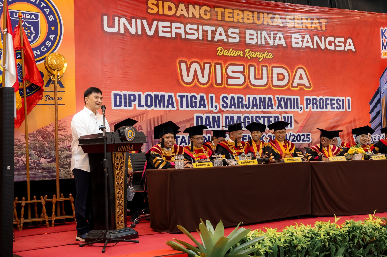 Wakil Gubernur Banten, Achmad Dimyati Natakusumah mengajak para sarjana Universitas Bina Bangsa (Uniba) untuk berkolaborasi menyelesaikan berbagai persoalan di masyarakat. Ajakan tersebut disampaikan usai menghadiri Sidang Terbuka Senat dalam rangka Wisuda 1.642 lulusan dari program Diploma Tiga, Sarjana, Profesi, dan Magister Tahun 2025 di Royal Krakatau Hotel, Kota Cilegon, pada Sabtu (25/10/2025).
