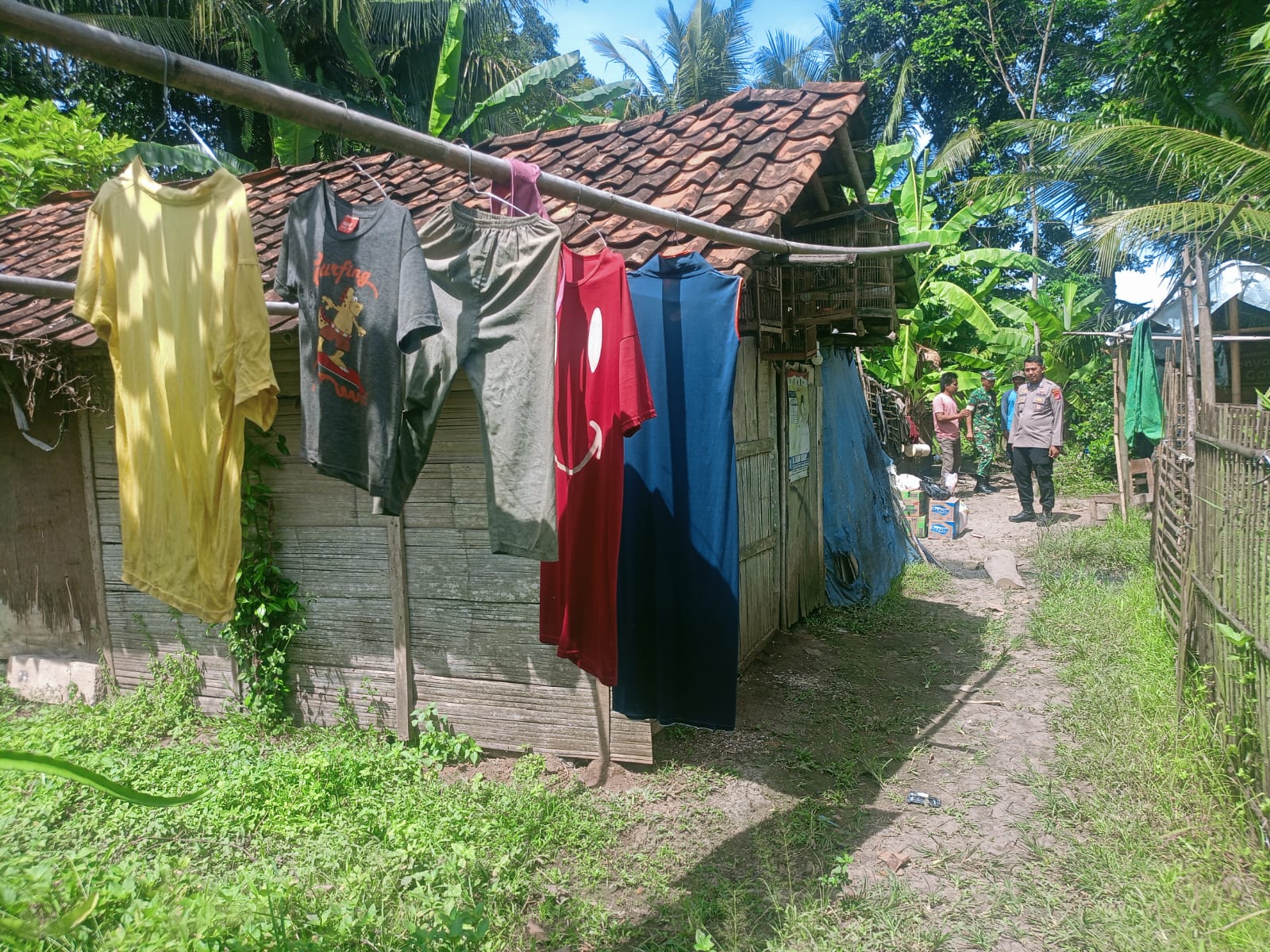 Kapolsek Pamarayan, AKP Yusuf Ependi, bersama Bhabinkamtibmas dan Babinsa, mengunjungi lokasi dan menyerahkan bantuan berupa sembako dan air mineral kepada keluarga Sarikan.