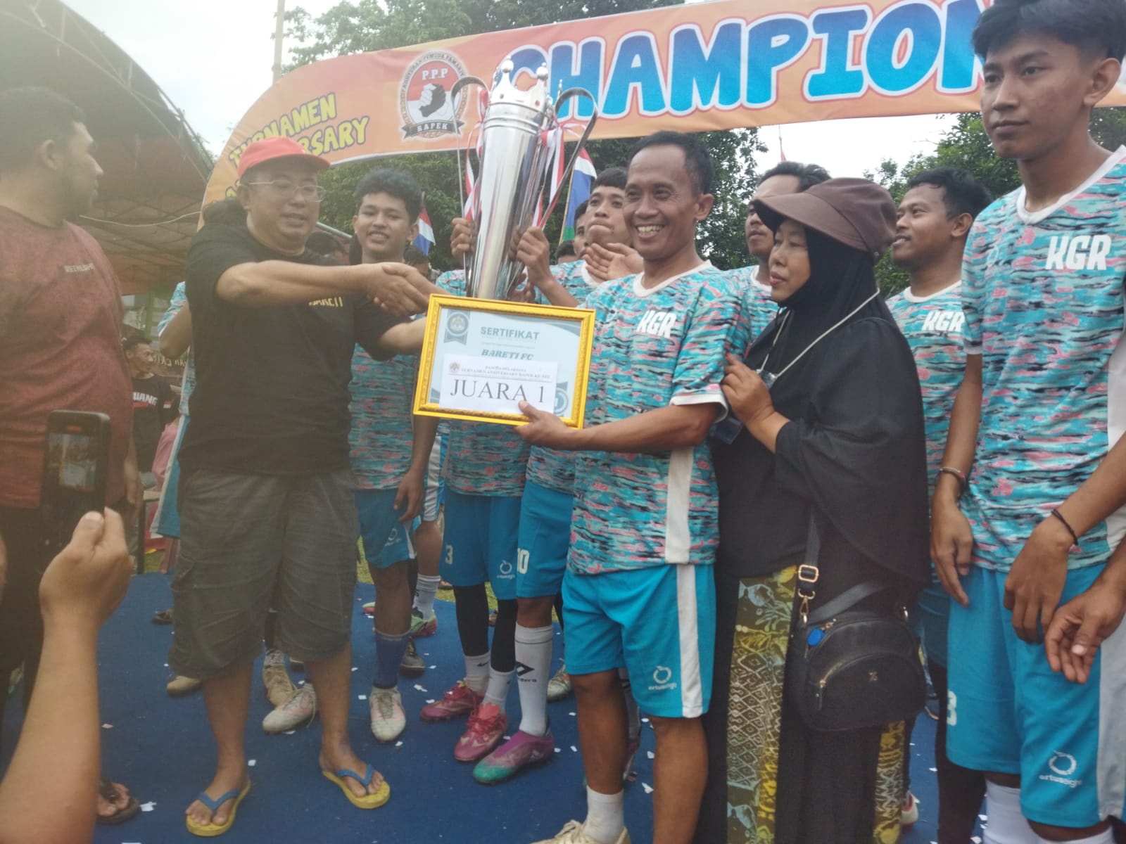 PS. Barete Kelurahan Cilaku, Kecamatan Curug, Kota Serang, Banten, behasil membobol gawang lawan PS Boru Masjid. PS. Barete akhirnya menggondol juara pertama turnamen sepak bola.