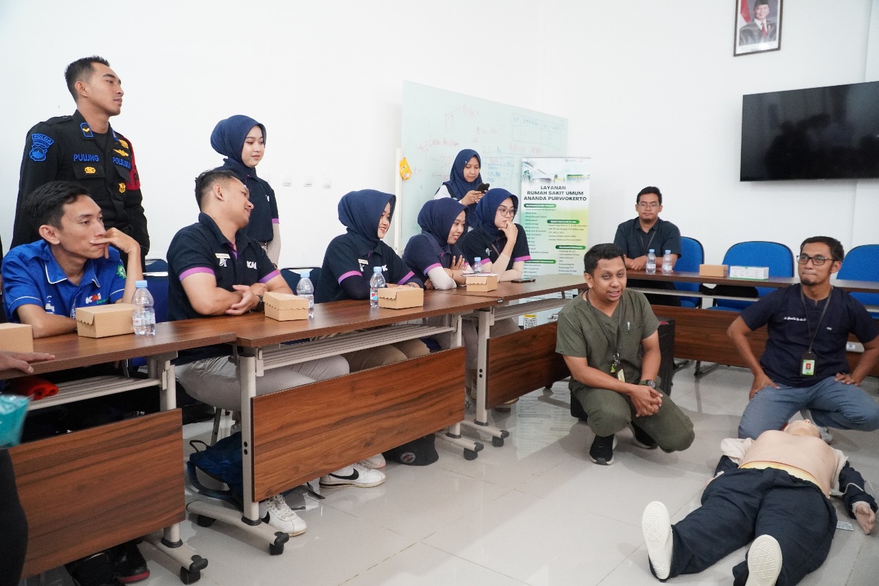 Pelatihan diberikan oleh Direktur Rumah Sakit Umum (RSU) Ananda Purwokerto dr. Moch. Bhagavad Gita Gandhi Surya Dirgantara yang memberikan materi terkait prosedur dasar penanganan korban, mulai dari pengecekan respons korban, bantuan pernapasan, penanganan perdarahan, hingga tata cara meminta bantuan medis secara cepat dan tepat.