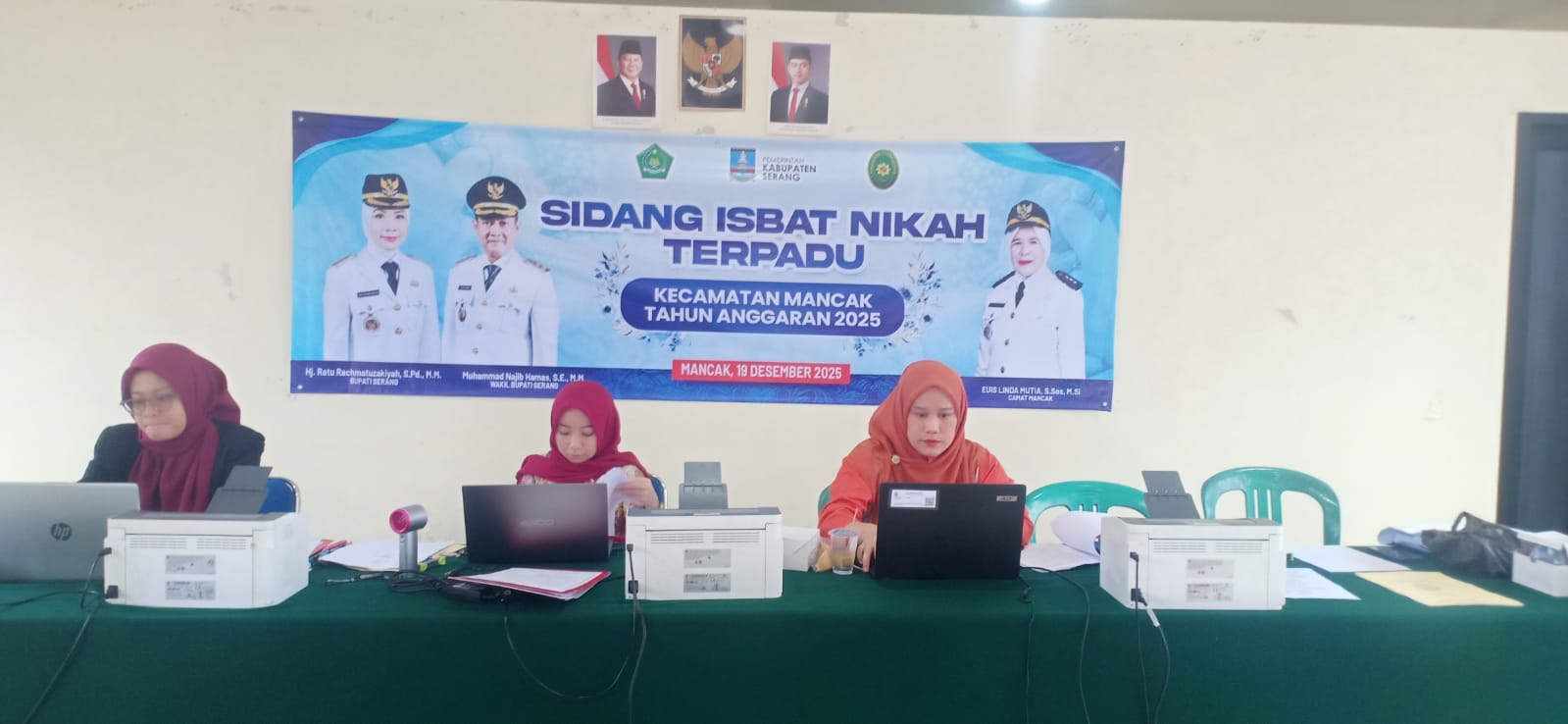 Sebanyak 25 pasangan suami istri (pasutri) dari 7 desa di Kecamatan Mancak, Kabupaten Serang, Banten, mengikuti istbat nikah terpadu di Aula Kantor Kecamatan Mancak, pada Jum’at (19/12/2025).