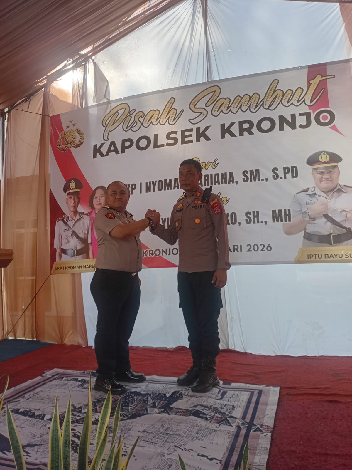 Acara Pisah Sambut Kapolsek Kronjo dari AKP I Nyoman SM, S.Pd, Kepada IPTU Bayu Sujatmiko, SH, MH, berlangsung dengan syasana ramah tamah dan rasa kekerabatan, pada Senin, 06 Januari 2026.